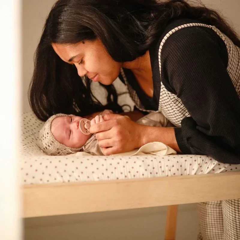 De extra zachte hoes voor het aankleedkussen is voorgewassen voor de gevoelige babyhuid.