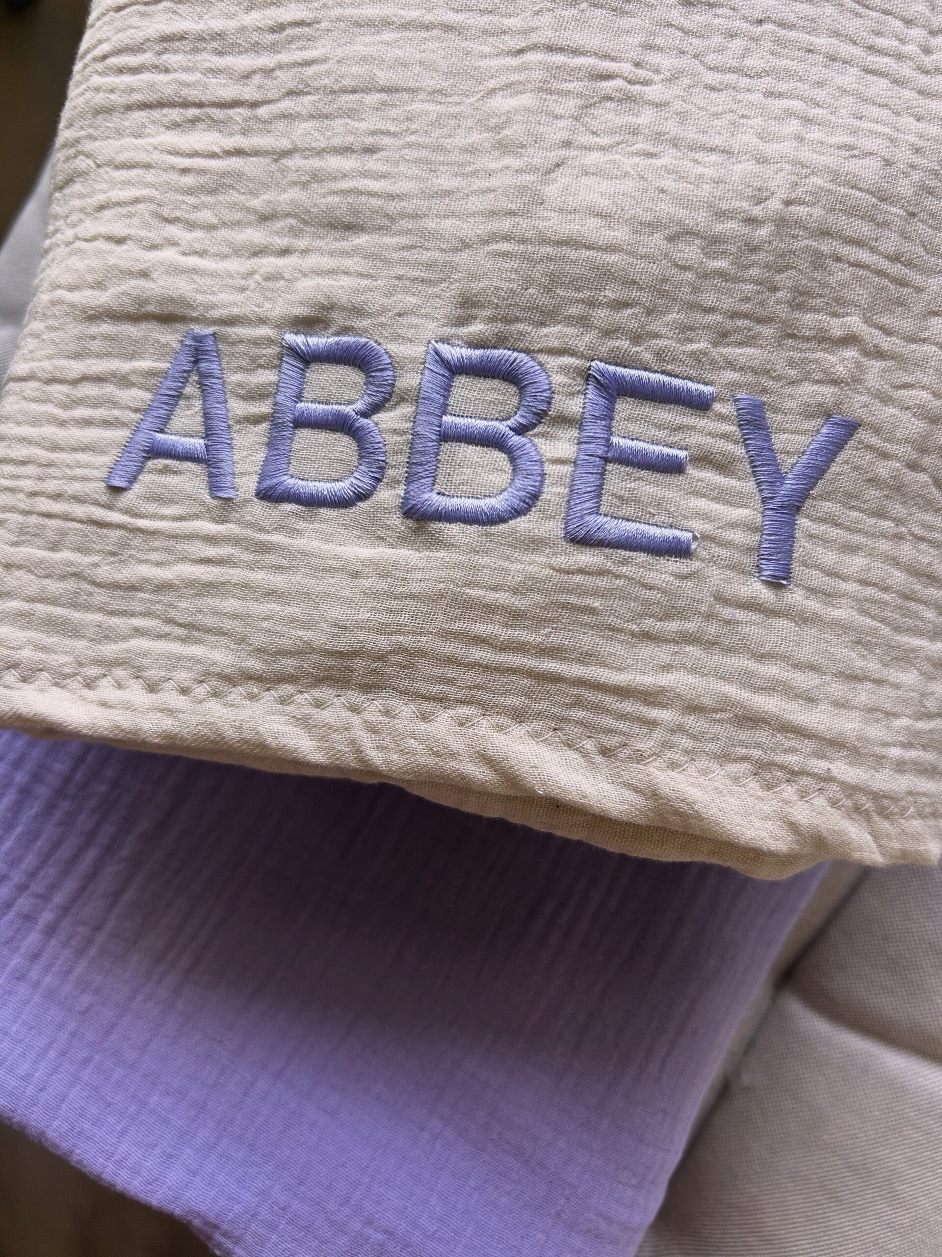 Wil je deze mooie hydrofiele doek laten personaliseren met naam? Let op meer letters = kleinere grootte. Tip: kies niet dezelfde kleur garen als de achtergrond.