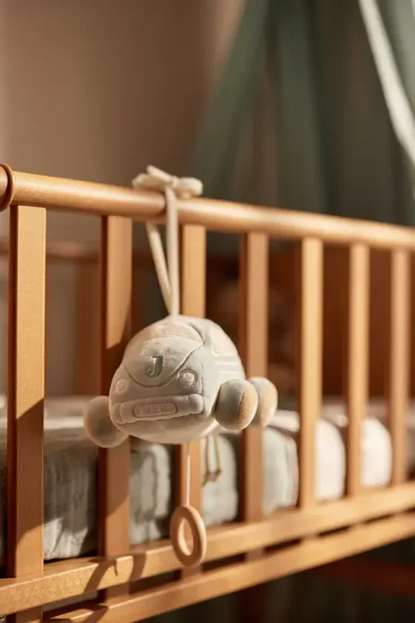 Laat je kleintje wegdromen met onze schattige On the Go muziekhanger in de vorm van een autootje. Deze zachte Sea Green gekleurde auto heeft verschillende biscuit gekleurde wielen en raampjes van ribstof! Door aan het koordje te trekken hoort jouw mini het rustgevende nummer lullaby. Deze muziekhanger is de perfecte metgezel om je baby in slaap te wiegen met een vleugje zachtheid en de betoverende klanken van deze fijne melodie!