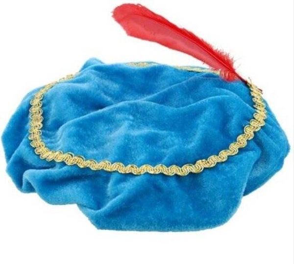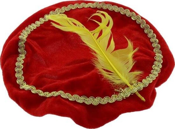 Velours pietenmuts voor kinderen. De gouden rand met versieringen in de buitenring maakt de pietenmuts helemaal compleet.